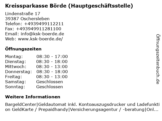 Hier finden sie die öffnungszeiten und ausstattungsmerkmale der kreissparkasse börde, geschäftsstelle wolmirstedt bahnhofstr. Danke, dass sie uns mit ihren rückmeldungen dabei unterstützen, noch besser zu werden. Kreissparkasse börde (germany) company profile: Hier finden sie die öffnungszeiten und ausstattungsmerkmale der kreissparkasse börde, geschäftsstelle wolmirstedt bahnhofstr.